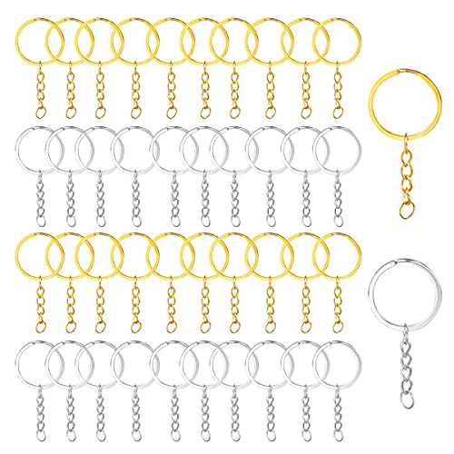 Anello portachiavi rotondo in metallo, 50 pezzi, con catena per gioielli fai da te (oro, argento)