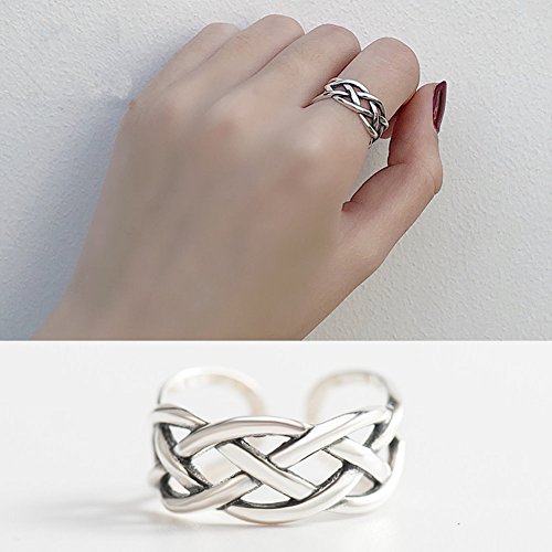 Anello Regolabile In Argento Sterling 925 Con Nodo d'Amore Intrecciato Vintage Anelli Antichi a Fascia Aperta Per Donne Ragazze Uomini