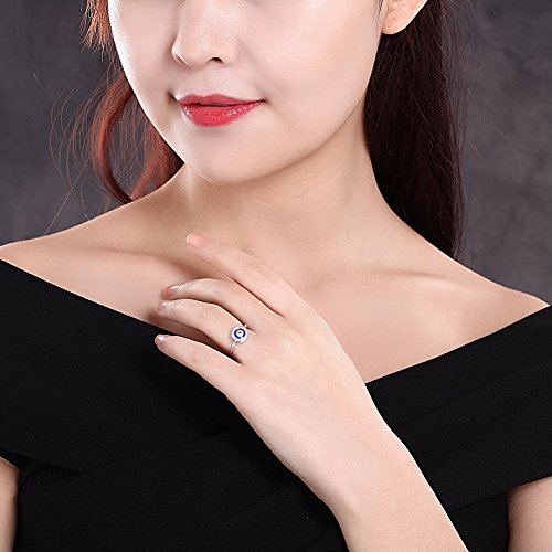 Anello rotondo in argento Sterling 925 con zirconi e smalto blu [Misura L 1/2]