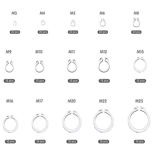 【Materiale】-Il kit di anelli elastici è realizzato in acciaio inossidabile 304, resistente alla corrosione, non facile da arrugginire e ha una lunga durata. La superficie è liscia senza sbavature. 15 dimensioni per soddisfare le esigenze dei diversi momenti.