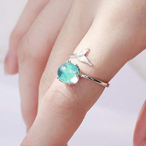 Anello della sirena 2PCS Mermaid Tail strass blu Bubble finger apertura regolabile donne anello regalo per la indossano quotidiana e la Festa Anello sorella Argento Regalo per Ragazza,Regalo di San