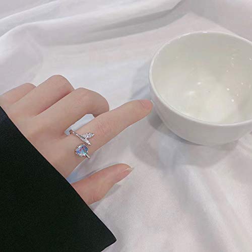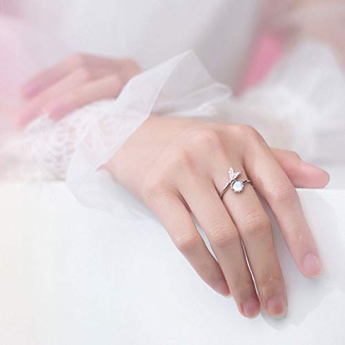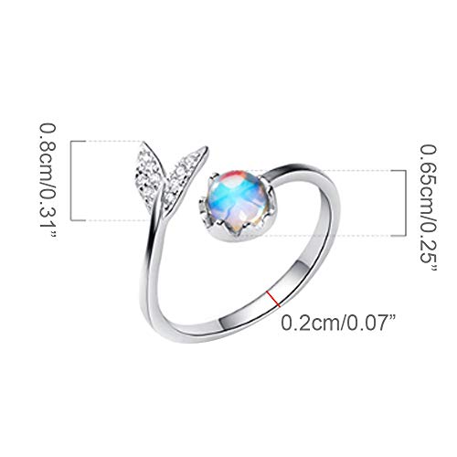 Anello Sirena con Pietra Anello Aperto Della Sirena Anello Aperto in Argento Sterling Anello in Pietra di Luna Regolabili per la Indossano Quotidiana e la Festa Colore Anello Sorella Argento 2 Pezzi