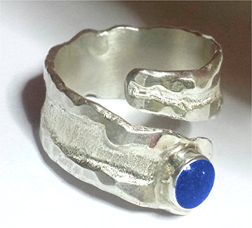 Anello con testo personalizzato, in argento, martellato aperto e regolabile, con pietra in vetro pressato.