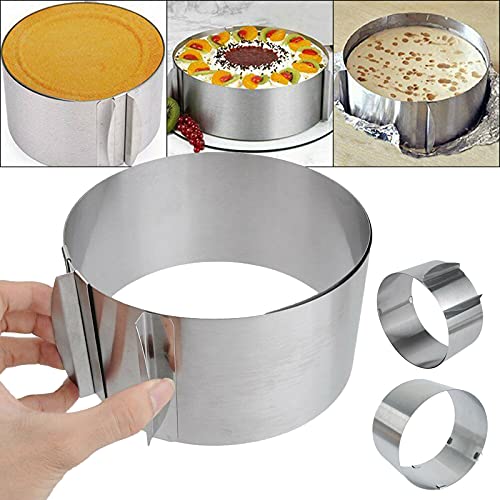 Anello per torta in acciaio inox, 16 - 30 cm, regolabile, con scala incisa e clip di fissaggio, forma rotonda, altezza 8,5 cm