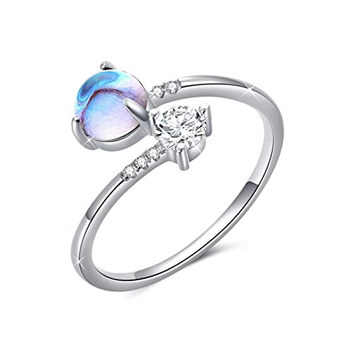 Anello turchese/pietra di luna per donna Argento sterling 925 Anello regolabile turchese/pietra di luna Anelli aperti Regali di compleanno Gioielli per donne Ragazze