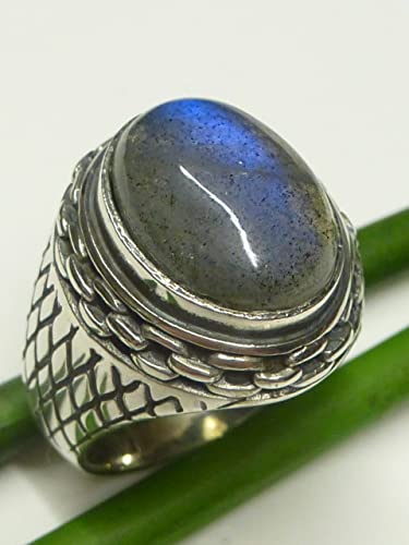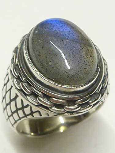 Anello da uomo in argento, misura 60, vera pietra labradotite, in argento Sterling massiccio lavorato, argento sterling, Labradorite
