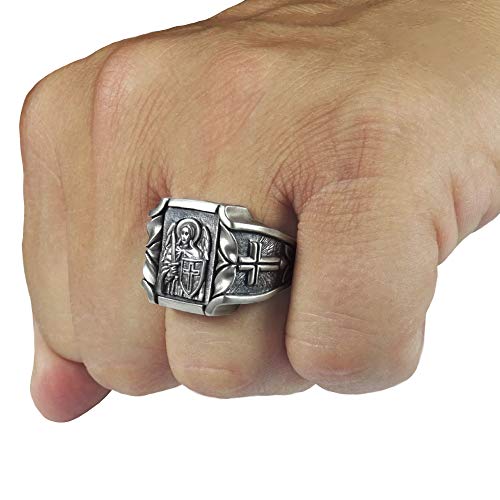 Anello da uomo in argento Sterling 925 con croce di San Michele Arcangelo realizzato a mano e Argento, 27,25, colore: Argento - Finitura rustica., cod. SS081