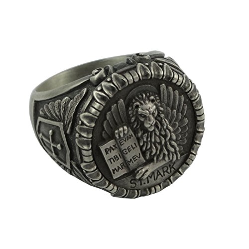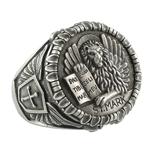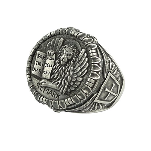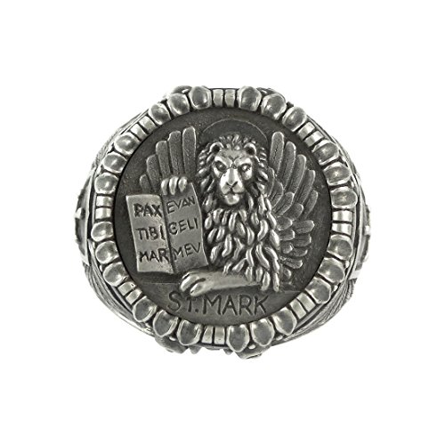 Anello da uomo in argento Sterling con leone veneziano di San Marco Evangelista e Argento, 24,5, colore: Argento rustico., cod. SS007
