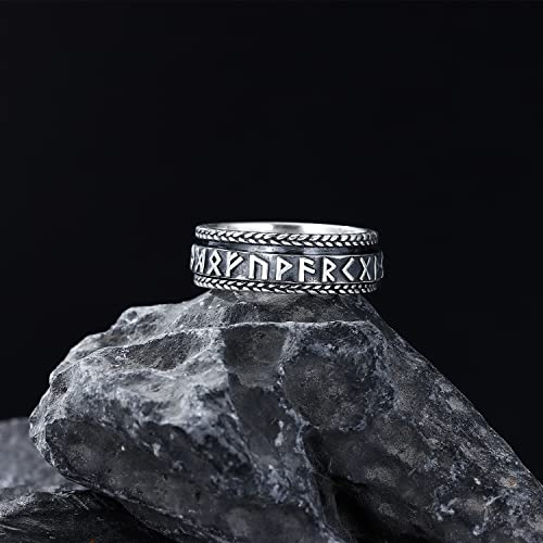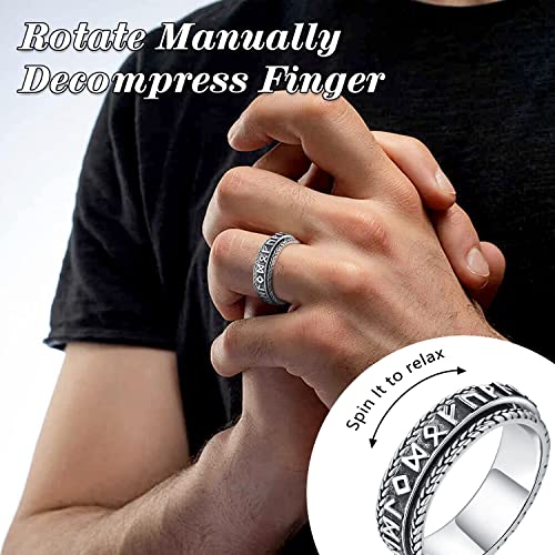 Anello vichingo rotante: Questo anello vichingo è inciso con l'alfabeto runico nordico, l'anello rotante ha una superficie liscia e può essere ruotato manualmente per alleviare l'ansia e lo stress, mantenendoti calmo e rilassato, girare l'anello è divertente e curativo. Indossa questo anello spinner per motivare te e il tuo amico ad affrontare momenti difficili.