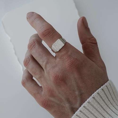 Anello da uomo moderno in argento sterling 925 rettangolare con struttura realizzata a mano, design minimalista dalla Germania, con confezione regalo e Argento, 66 (21.0), colore: argento