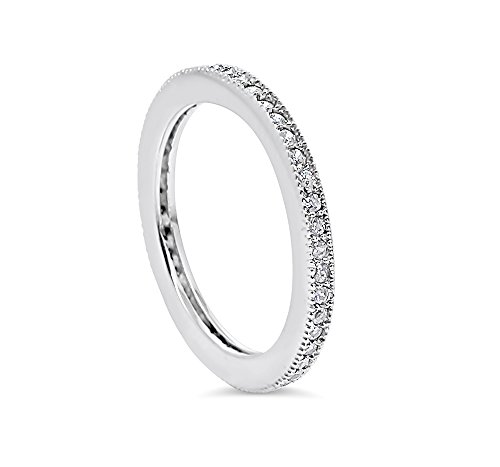 Anello a veretta Full Eternity da donna, per matrimonio o fidanzamento, in argento sterling 925 certificato nel Regno Unito, placcato in oro bianco, con diamanti sintetici di laboratorio, spessore 2 mm e argento, 50 (15.9), cod. SR2008_K