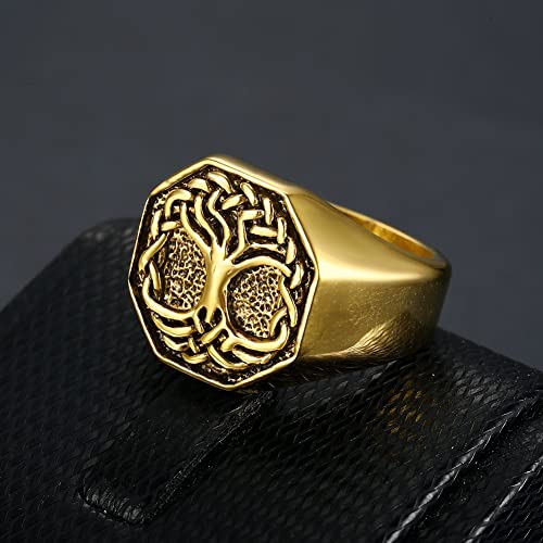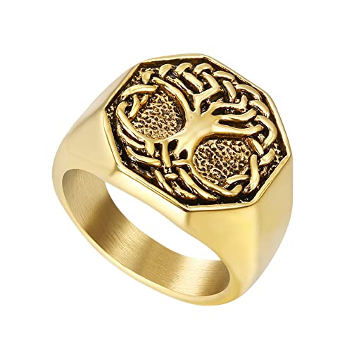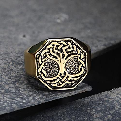 Anello Yggdrasil da Uomo In Acciaio Inossidabile, Anello Con Nodo Celtico 'albero Della Vita Vichingo Nordico, Vintage Classic Octagon Signet Biker Ring Fedi Nuziali di Natale Gioielli
