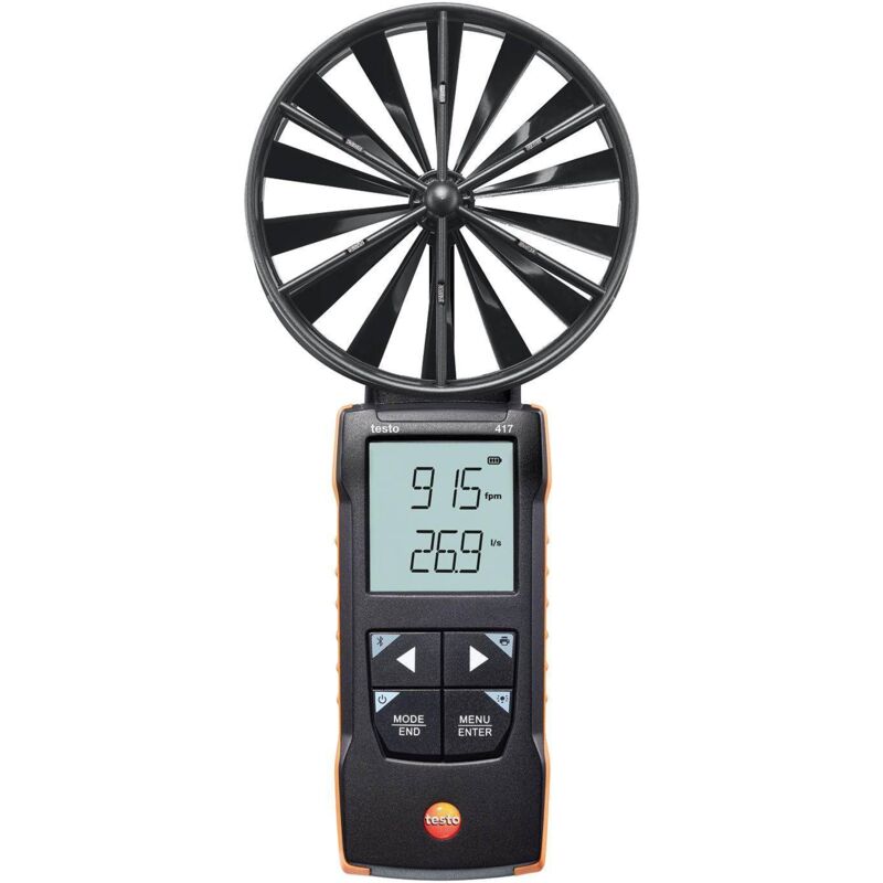 Anemometro a elica da 100 mm con collegamento all'app Testo 417 0563 0417 Il compatto anemometro a elica da 100 mm testo 417 è la soluzione ideale per determinare in modo semplice, rapido e preciso la velocità dell'aria e la portata in corrispondenza delle bocchette di entrata e di uscita dell'aria negli impianti di climatizzazione e ventilazione. Anche la regolazione della ventilazione meccanica controllata o la misura alle bocchette di aerazione sono un gioco da ragazzi con i kit testo 417 comprendenti cono di misura e raddrizzatore di flusso. Grazie al collegamento alla testo Smart App, la configurazione, la visualizzazione (anche su un secondo schermo) e l'archiviazione, così come la documentazione dei valori misurati sono gestite rapidamente e senza complicazioni. Misura semplice, rapida e precisa della velocità dell'aria, della portata e della temperatura alle bocchette di entrata e di uscita dell'aria. Regolazione efficiente della ventilazione meccanica controllata nello spazio