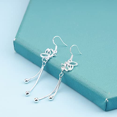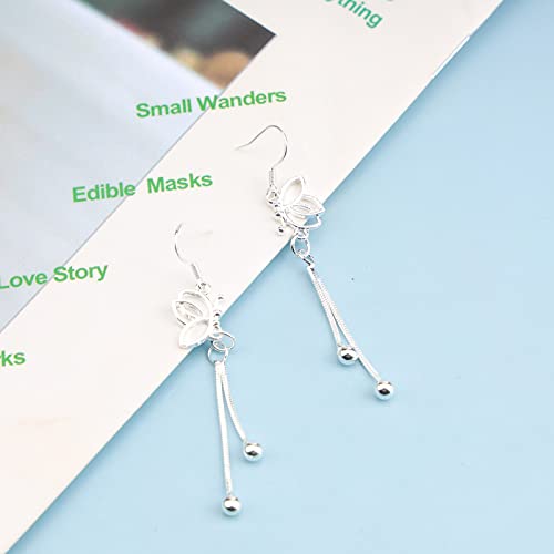 Aneneiceera Boho Farfalla Goccia Dangle Orecchini Moda Argento Orecchini Argento Perlina Orecchini Lunga Catena Nappa Orecchini Quotidiano Festa Orecchini Vintage Gioielli Di Nozze Per Le Donne E Le