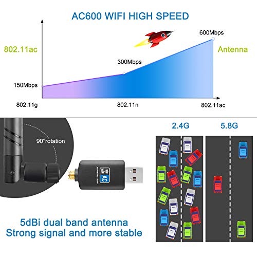 ANEWISH 1200Mbps Wireless Adattatore WiFi USB 3.0 Chiavetta WiFi con Antenna 5dBi Scheda WiFi 802.11ac Dual Band 2.4G / 5.8G Ricevitore WiFi per PC Windows 10/8.1/8/7 / Vista, Mac OS 10.9-10.13 (Driver Free WiFi)