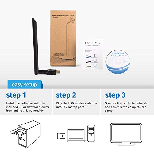 ANEWISH 1200Mbps Wireless Adattatore WiFi USB 3.0 Chiavetta WiFi con Antenna 5dBi Scheda WiFi 802.11ac Dual Band 2.4G / 5.8G Ricevitore WiFi per PC Windows 10/8.1/8/7 / Vista, Mac OS 10.9-10.13 (WiFi 1200Mbps)