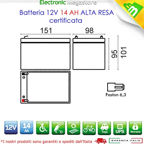 ANFEL 12V 14AH Batteria Ricaricabile al Piombo VRLA Faston F2 6.35mm per allarmi antifurti, sistemi di Sicurezza, Batterie di Ricambio per ups USV, Solar, Solarpanel