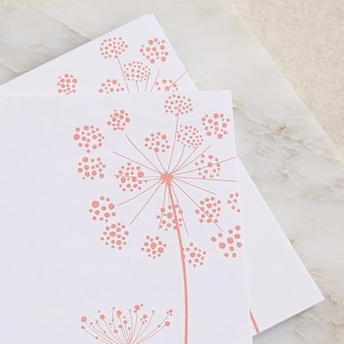 Venduto in una confezione da 25 biglietti: ogni biglietto misura circa 10 x 15 cm ed è stampato su cartoncino bianco liscio con un disegno di fiori selvatici rosa cipria.