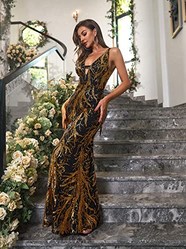 Angel-fashions Vestito a Sirena Abito con Paillettes Senza Spalline Paillette Ramo di Un Albero Netto delle Donne