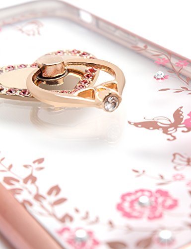 Angel&Favour iPhone 5/6/7 Plus Custodia Flessibile Cover Rosa Strass con Supporto Dell'anello AE78AX7P-7p
