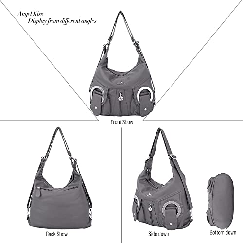 Angel kiss Borsa Donna Borsa a Mano Borse a Spalla Pelle PU Grande Borse Donna Tracolla Borse a Mano Moda cerniera Borsa Hobo Tote Vintage per lavorare, fare shopping, viaggiare (grigio-1)