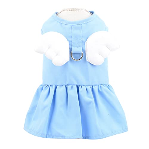 SMALLLEE_LUCKY_STORE Angel Wing vestito,set di pettorina per cani con anello a D, gonna per cuccioli, abbigliamento estate per animali di piccola taglia Yorkie Chihuahua, blu, M