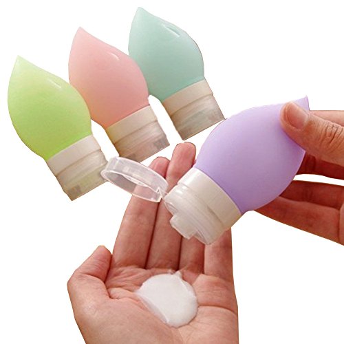 100% silicone del commestibile, Fatto di TSA approvato e sicuro per i carry-on / viaggio, Quattro diversi colori brillanti per la differenziazione, misura per prodotti da bagno, shampoo o crema da bagno, e soprattutto adatto per ogni viaggiatore o persone in viaggio d'affari