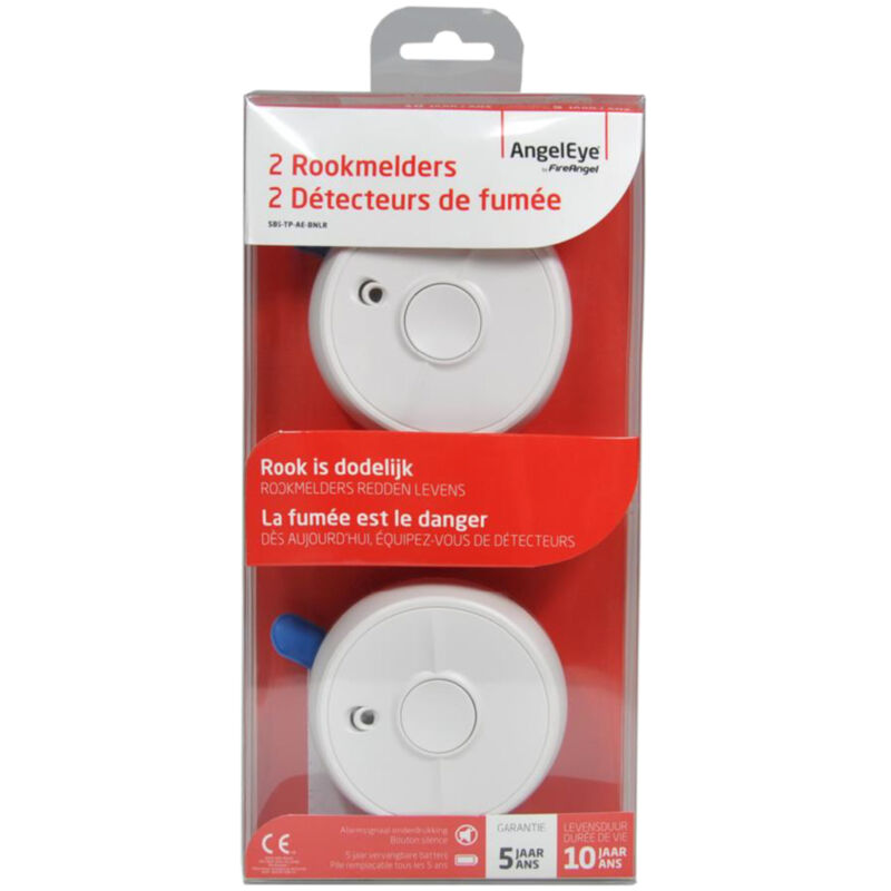 Rilevatore di fumo Angel Eye Sb5-tp-aeRilevatore di fumo otticoBatteria sostituibile da 9 VGrande pulsante di test centrale, test / silenzio intelligenteCon silenzio intelligente: consente di mettere in pausa il rilevatore di fumo fino a 8 minuti in caso di un messaggio indesiderato Se viene rilevato fumo, il rilevatore di fumo spentoDurata della vita: 10 anni5 anni di garanziaColore biancoContenuto della confezione: 2 pezzi