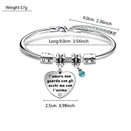 Angelra Regali di Coppia Bracciale Bracciletto da Donna"l'AMORE NON GUARDA CON GLI OCCHI MA CON L'ANIMA"Ciondolo con Incisione Acciaio Regolare Regali di Valentine's Day
