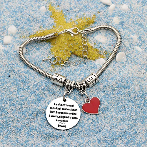 Angelra Regali di Ispirazione Bracciale Donna Braccialetti"La vita ed i sogni sono fogli di uno stesso libro"Acciaio Ciondolo con Incisone Regolabile