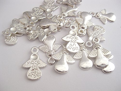 Ciondoli a forma di angelo, con scritta in inglese “Made for an Angel”, in argento tibetano, da 17,5 x 13 mm.