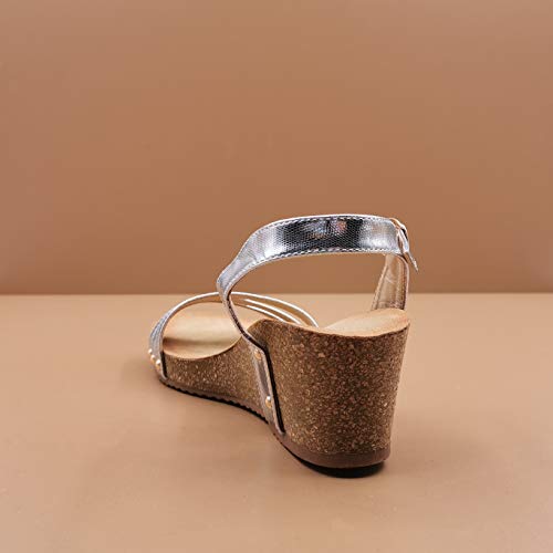 ANGKORLY - Scarpe Moda Sandali Casual Zeppa Disco Donna Metallico Sughero Borchiati Tacco Zeppa 5 CM - Argento 2 FD53 T 38