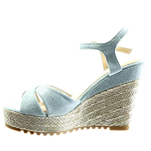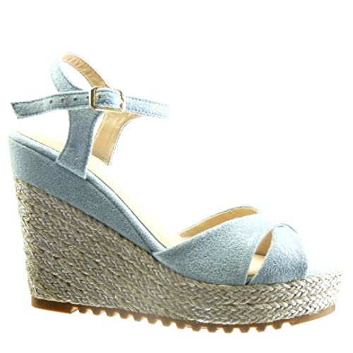 ANGKORLY - Scarpe Moda Sandali Espadrilla Zeppa Donna Corda Tacco Zeppa Piattaforma 11.5 CM - Blu 3 BL206 T 40