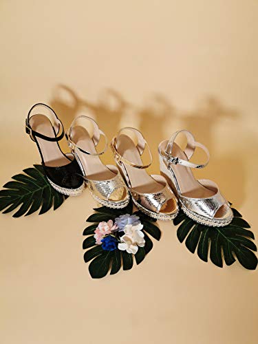 ANGKORLY - Scarpe Moda Sandali Espadrilla Zeppa Cinturino alla Caviglia Matrimonio Cerimonia Donna Effetto Pitone Pitone con Paglia Perla Tacco Zeppa Piattaforma 13 CM - Oro 88-318 T 41