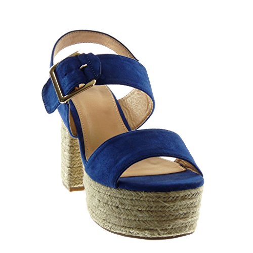 ANGKORLY - Scarpe Moda Sandali Scarpe Mulo Cinturino alla Caviglia Zeppa Donna Cordas Tanga Fibbia Tacco Blocco Alto 11 CM - Blu 5020-5 T 39