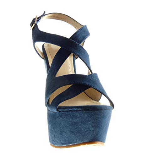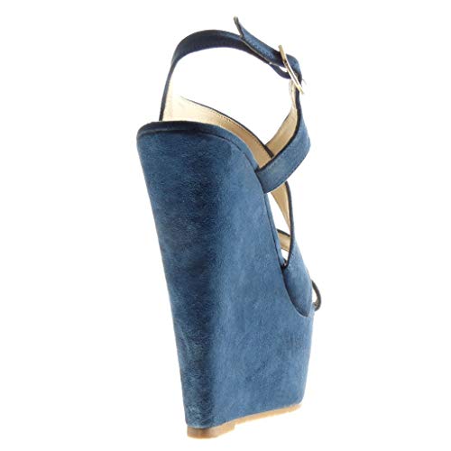ANGKORLY - Scarpe Moda Sandali Scarpe Mulo Zeppa Donna Tanga Tacco Zeppa Piattaforma 15 CM - Blu 14 6699-2 T 38