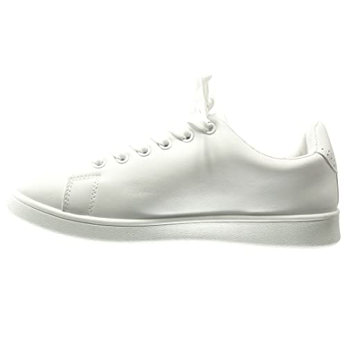 ANGKORLY - Scarpe Moda Scarpe - Sneakers Basso Donna Fantasia Ricamo Finitura Cuciture Impunture Tacco Piatto 0 CM - Bianco 4 OH005 T 40