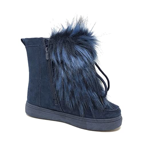 ANGKORLY - Scarpe Moda Scarpe - Sneakers Stivali da Neve Reversibile Donna Pelliccia Finta Semplice Basic Molto Dolce Tacco Piatto 3 CM - Blu Oceano PL01 T 36