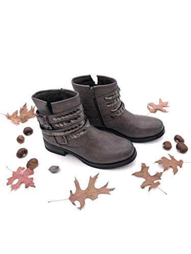 ANGKORLY - Scarpe Moda Stivaletti Scarponcini biker cavalier stile vintage donna borchiati tanga multi-briglia Tacco a blocco alto 3.5 CM Foderato di Pelliccia