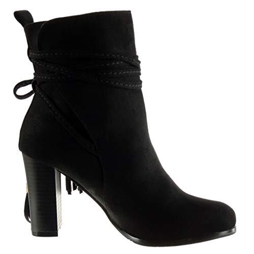 ANGKORLY - Scarpe da Moda Stivaletti - Scarponcini Cavalier Donna Multi-Briglia Frange Tacco a Blocco Tacco Alto 9 CM - Soletta Foderato di Pelliccia