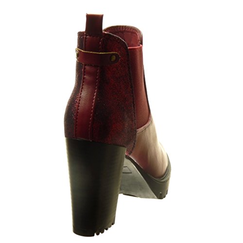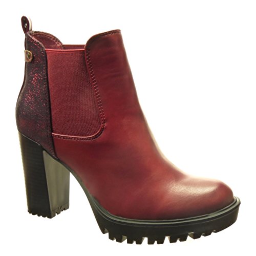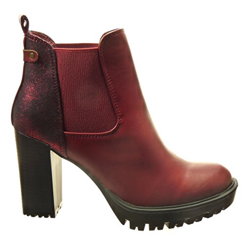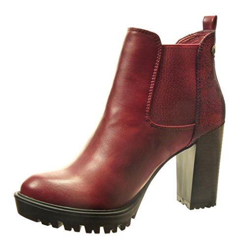 ANGKORLY - Scarpe Moda Stivaletti Scarponcini Chelsea Boots Donna Lucide Borchiati Tacco a Blocco Alto 9.5 CM Foderato di Pelliccia