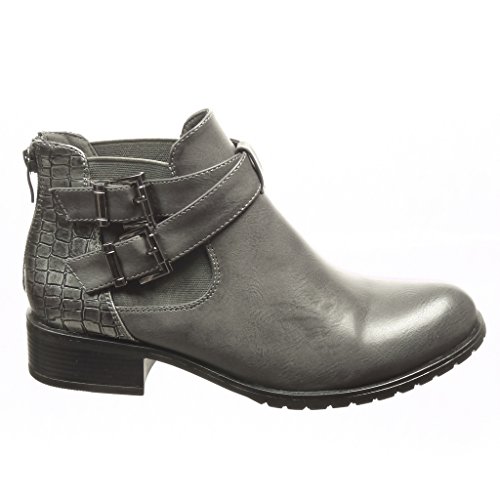 ANGKORLY - Scarpe Moda Stivaletti Scarponcini Chelsea Boots Donna Pelle di Serpente Tanga Fibbia Tacco a Blocco 3 CM - Soletta Foderato di Pelliccia