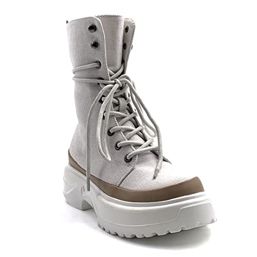 ANGKORLY - Scarpe Moda Stivaletti Scarponcini Scarpe - Sneakers Anfibi Streetwear Grande Zeppe Donna Caricato Merletto Tacco Blocco 4 CM - Bianco 4 BC609 T 40