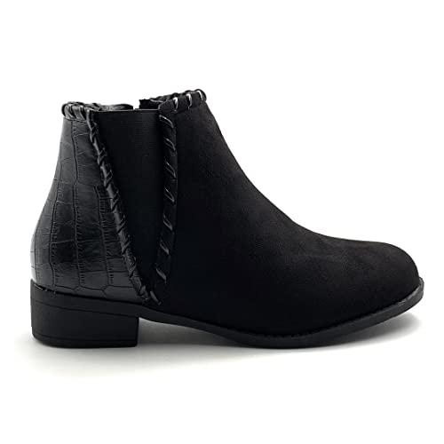 ANGKORLY - Scarpe Moda Stivaletti Scarponcini Stivali - Scarponi Chelsea Boots Biker - Moto Casual Donna Effetto Pitone Pitone Intrecciato Tacco Blocco 3.5 CM - Nero 21 YU-171 T 38