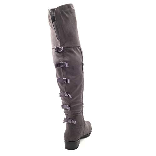 ANGKORLY - Scarpe da Moda Stivali Alti Cavalier Flessibile Donna Nodo Tacco a Blocco Tacco Alto 3.5 CM - Soletta Foderato di Pelliccia