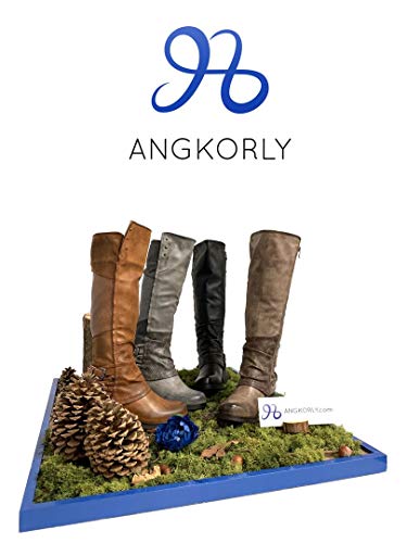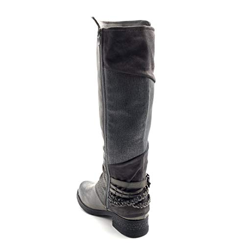 ANGKORLY - Scarpe Moda Stivali - Scarponi Stivali Alti Ginocchio Cavalier Biker Biker Donna Multi-Briglia Effetto Pitone Pitone Intrecciato Tacco a Blocco 3.5 CM - Grigio F3210 T 36