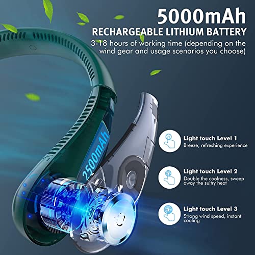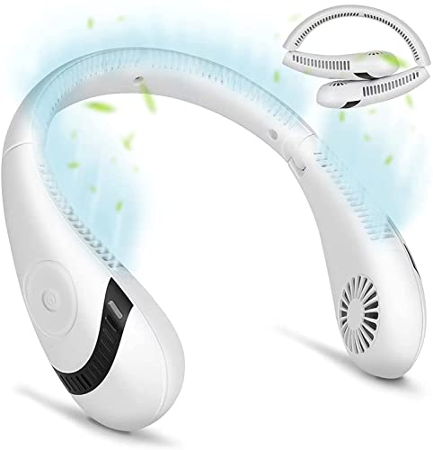 AngLink Ventilatore da Collo Portatile - 5200mAh USB Batteria Ricaricabile Mini Fan, Aria a 360°, Silenzioso, 3 Livelli Velocità per Uomo, Regalo, Camper, Ufficio (Bianco)