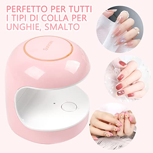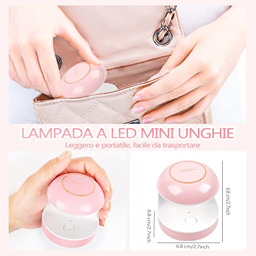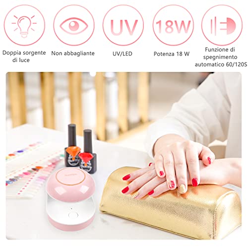ANGNYA Mini Lampada Led Unghie Rosa,Lampada Unghie UV Led 18W,Lampada UV Unghie semipermanente con USB e 2 Timer Preimpostati (60s,120s)