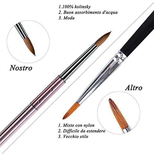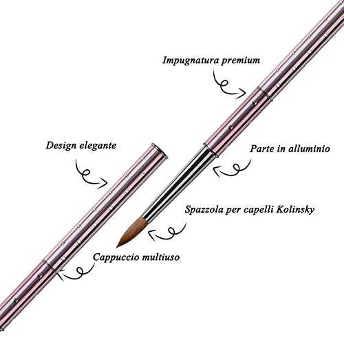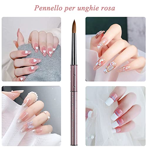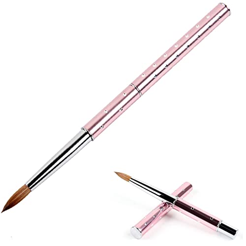 ANGNYA Pennello per Unghie Pennello Acrilico per Unghie in Pelo Kolinsky con Coperchio Penna per Unghie Rimovibile Rosa(6#)