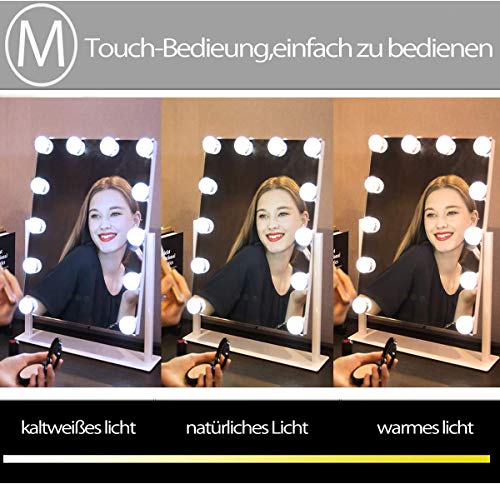ANGNYA - Specchio da trucco in stile Hollywood con 12 lampadine LED dimmerabili, controllo touch, girevole a 360°, specchio da trucco, idea regalo per donne